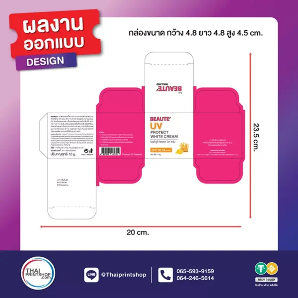 | รูปทรงฝาเปิดหน้า หกเหลี่ยม ก้นขัด ไดคัทแปลกๆ กล่องครีม กล่องเซรั่ม | 5-7 วันทำการ | แก้ไขได้ 3 ครั้ง | 2,000.- |